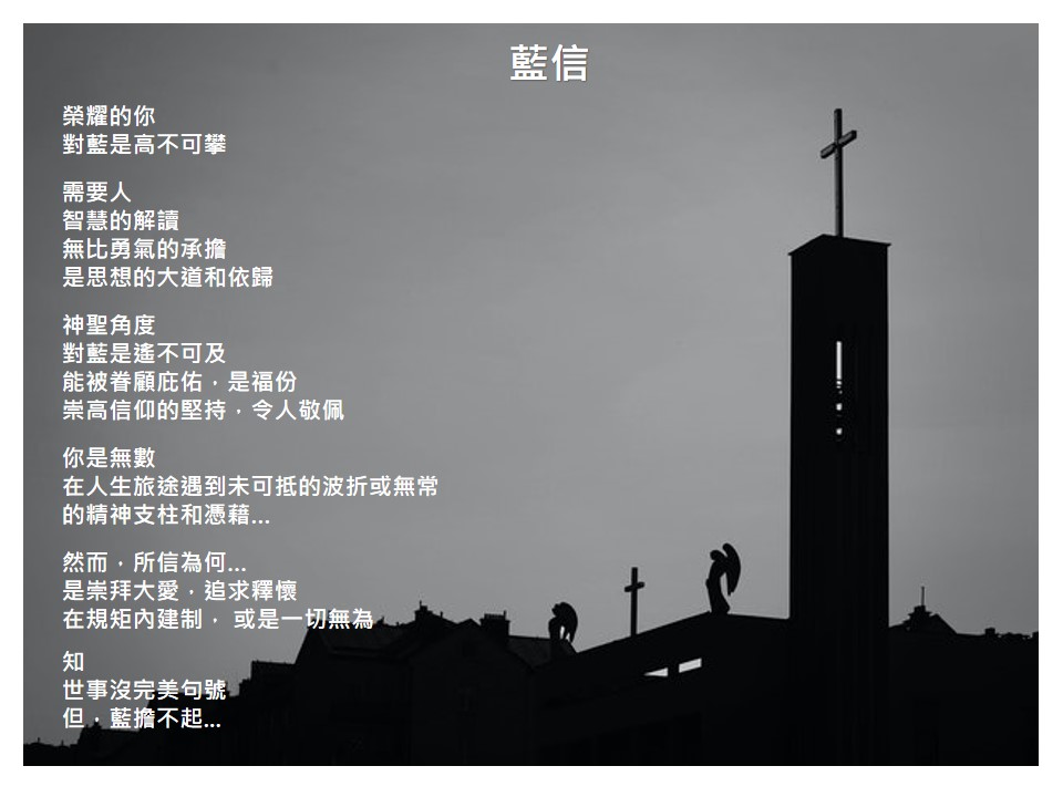 Bluenite Chat I 藍 . 夜序 歡迎分享本文 :藍 . 隨想 集散文、短篇和偶拾的雜貨區… June 2020 – 藍澳 這篇短文是在澳門參與晚宴後在酒店夜望隨筆。 Bluenite01 June 2020 – 藍信 和信仰有關的短語 Bluenite02 June 2020 – 北海道UFO UFO? June 2020 – 藍月夜 Bluenite03 June 2020 – 藍仲夏 Bluenite04 July 2020 – 藍邀月 Bluenite05 August 2020 – 月亮紅了臉 Bluenite06